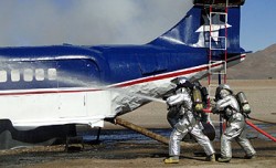 26 de Julio de 2011.- Alrededor de 30 especialistas de la Dirección General de Aeronáutica Civil, provenientes de Calama, Antofagasta, Isla de Pascua y La Serena, realizaron diversos ejercicios de salvamento de extinción de incendios, en una actividad organizada por el Club Aéreo de Cobre, CADECO, con el apoyo de la División Salvador de Codelco.